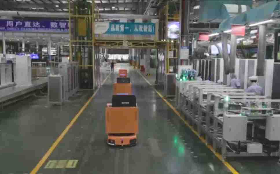 为车载冰箱物流配送打造的智能解决方案,,包含产中物流通过潜伏举升AMR搬运至线边,,,产后成品物流智能仓储,,,流程包含产中物流智能齐套入库,,线边安灯叫料AMR智能配送至线边,,,成品入库、、、、出库,,,,通过无人堆高车机器人,,智能仓储管理替代人工作业管理,,,实现更高存储、、更高效率、、更具柔性化的解决方案。。。